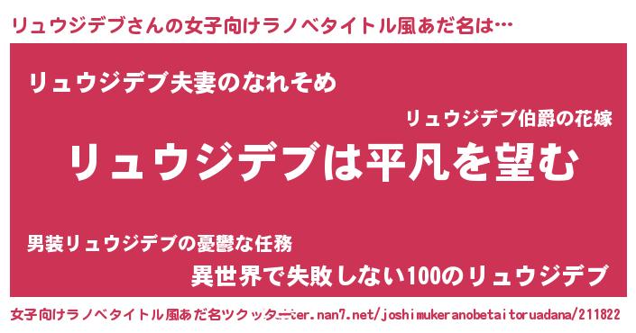 | 男性向けラノベタイトル風あだ名 | 『ダンジョンにリュウジデブを求めるのは間違っているだろうか』 |