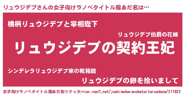 | 胡散臭い通販商品みたいなあだ名 | 『来世でも幸せになれる水素水…その名も「リュウジデブ」』 |