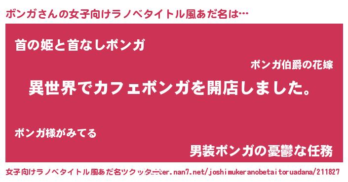 | ヒーロー風カッコイイあだ名 | 『ネオボンガ』『ウルトラボンガマン』 |
