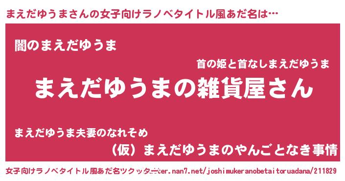 | 男性向けラノベタイトル風あだ名 | 『やはりまえだゆうまの青春ラブコメはまちがっている 』 |