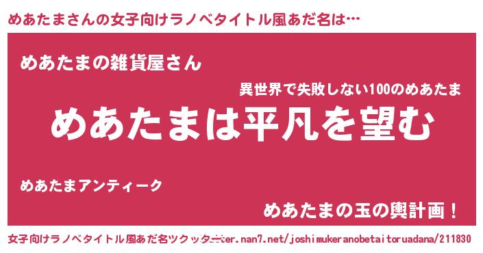 | 胡散臭い通販商品みたいなあだ名 | 『信頼と実績のペンダント…その名も「めあたま」』 |