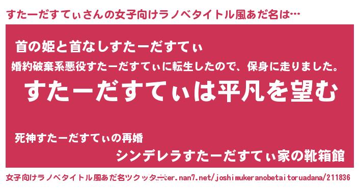 | 意味不明あだ名 | 『とにかく怪しいすたーだすてぃ』 |