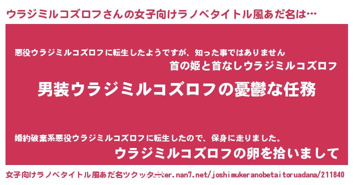 | 男性向けラノベタイトル風あだ名 | 『冴えないウラジミルコズロフの育てかた』 |