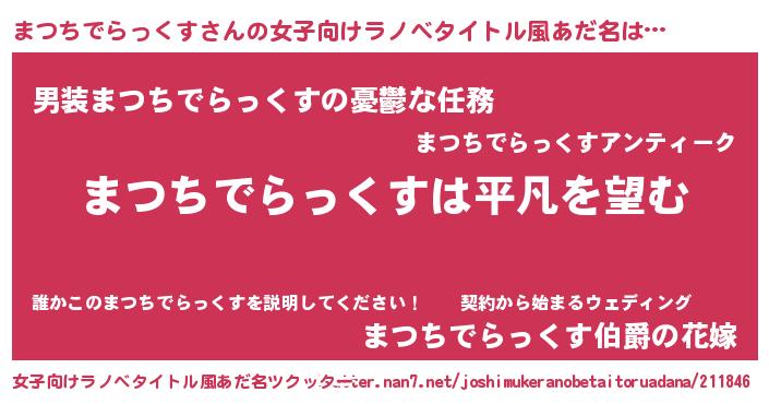 | 男性向けラノベタイトル風あだ名 | 『ダンジョンにまつちでらっくすを求めるのは間違っているだろうか』 |