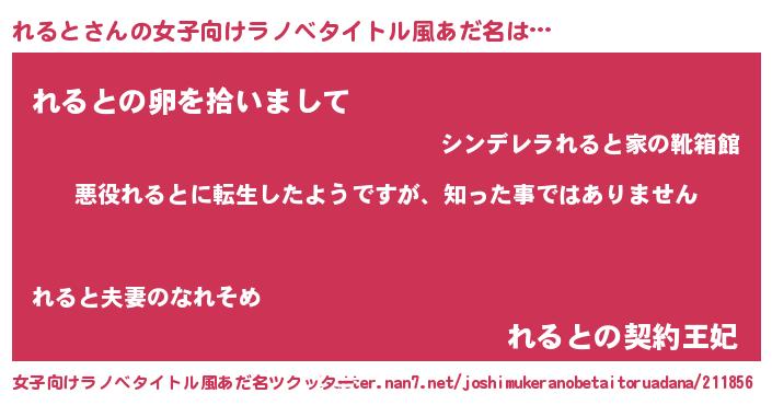 | 胡散臭い通販商品みたいなあだ名 | 『あなたにだけ特別に提供する限定10本のレアな日本酒…その名も「れると」』 |