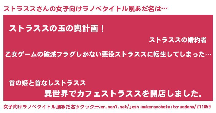 | 意味不明あだ名 | 『住所不定無職ストラスス(81歳)』 |