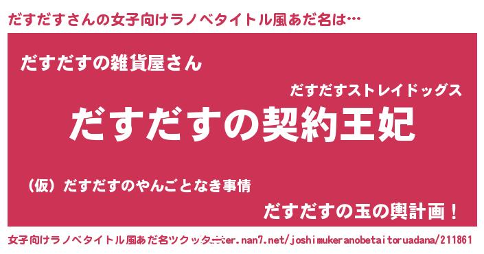 | 意味不明あだ名 | 『永久保存だすだす』『自称だすだす』 |