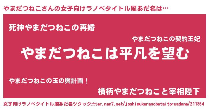 | 男性向けラノベタイトル風あだ名 | 『ダンジョンにやまだつねこを求めるのは間違っているだろうか』 |