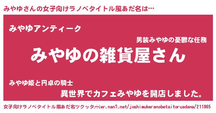 | 男性向けラノベタイトル風あだ名 | 『やはりみやゆの青春ラブコメはまちがっている 』 |