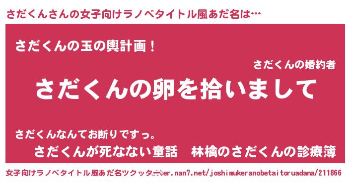 | 男性向けラノベタイトル風あだ名 | 『ダンジョンにさだくんを求めるのは間違っているだろうか』 |