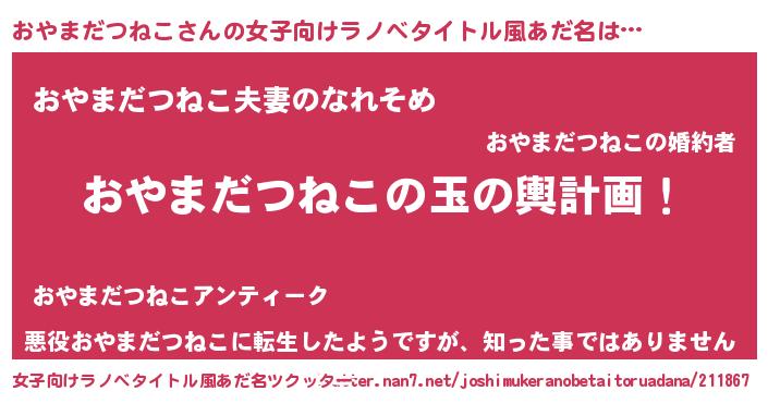 | 男性向けラノベタイトル風あだ名 | 『おやまだつねこ~年齢イコール彼女いない歴の魔法使い~』 |