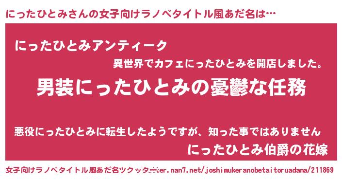 | 男性向けラノベタイトル風あだ名 | 『冴えないにったひとみの育てかた』 |