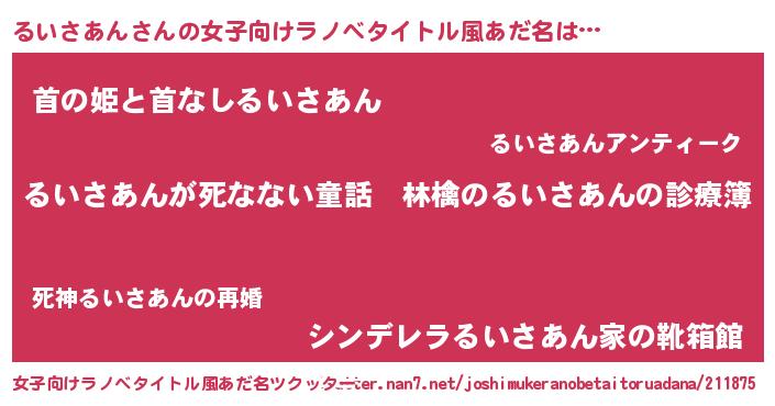 | 男性向けラノベタイトル風あだ名 | 『魔弾の王とるいさあん』 |