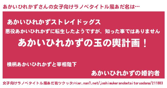 | ヒーロー風カッコイイあだ名 | 『サイバー戦士アカイヒレカズ』 |