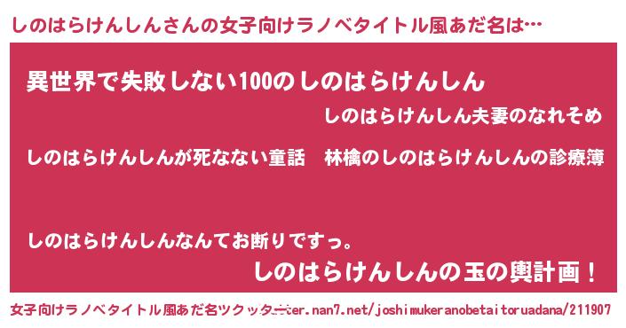 | 意味不明あだ名 | 『住所不定無職しのはらけんしん(5歳)』 |