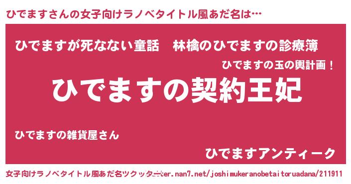 | 男性向けラノベタイトル風あだ名 | 『誰もが恐れるあのひでますが、ぼくの専属メイドになるようです。』 |