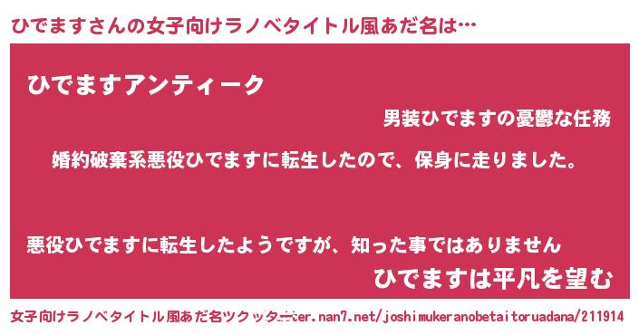 | 男性向けラノベタイトル風あだ名 | 『ヒデマススレイヤー』 |