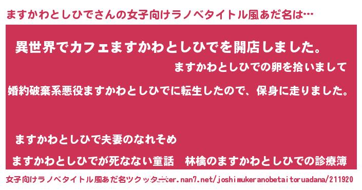 | 胡散臭い通販商品みたいなあだ名 | 『絶対に幸福をもたらす健康食品…その名も「ますかわとしひで」』 |