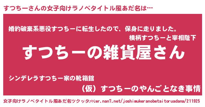 | 男性向けラノベタイトル風あだ名 | 『やはりすつちーの青春ラブコメはまちがっている 』 |