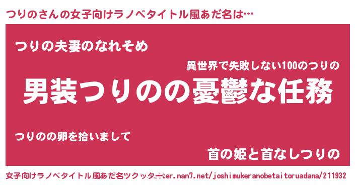 | 男性向けラノベタイトル風あだ名 | 『冴えないつりのの育てかた』 |