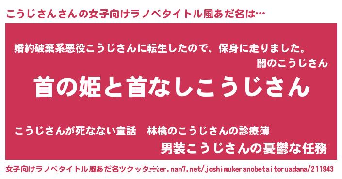 | ヒーロー風カッコイイあだ名 | 『超時空戦士コウジサン』『仮面コウダー』 |