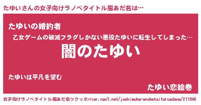 | 男性向けラノベタイトル風あだ名 | 『Re:たゆいから始める異世界生活』 |