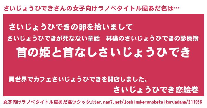 | 胡散臭い通販商品みたいなあだ名 | 『信頼と実績のペンダント…その名も「さいじょうひでき」』 |