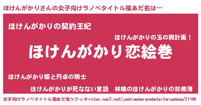 | ヘコむあだ名 | 『ほけんがかり(震え声)』『ほけにゅー』 |