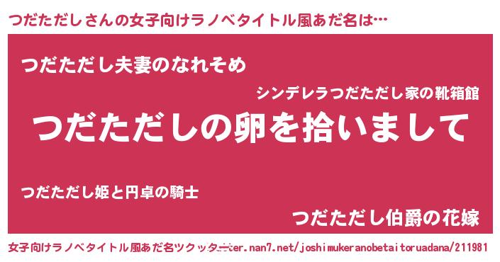| 男性向けラノベタイトル風あだ名 | 『つだただしの嫁は女の子じゃないと思った?』 |