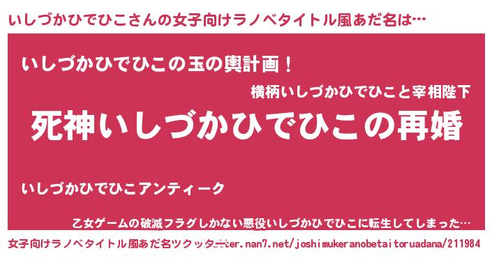 | 男性向けラノベタイトル風あだ名 | 『ノーゲーム・ノーイシヅカヒデヒコ』 |