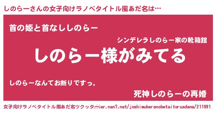 | ヒーロー風カッコイイあだ名 | 『炎刃騎士シノ』『正義の使者しのらー』 |