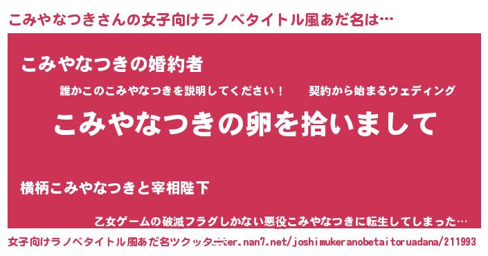 | 胡散臭い通販商品みたいなあだ名 | 『伝統あるサプリメント…その名も「こみやなつき」』 |