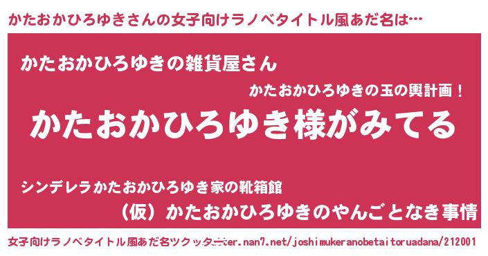 | 男性向けラノベタイトル風あだ名 | 『かたおかひろゆきの嫁は女の子じゃないと思った?』 |