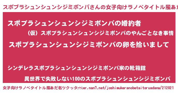 | 男性向けラノベタイトル風あだ名 | 『スポブラシュンシュンシジミボンバの嫁は女の子じゃないと思った?』 |