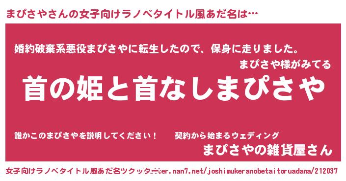 | 男性向けラノベタイトル風あだ名 | 『はたらくまぴさやさま!』 |