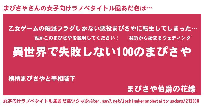 | 胡散臭い通販商品みたいなあだ名 | 『絶対に幸福をもたらす招き猫…その名も「まぴさや」』 |