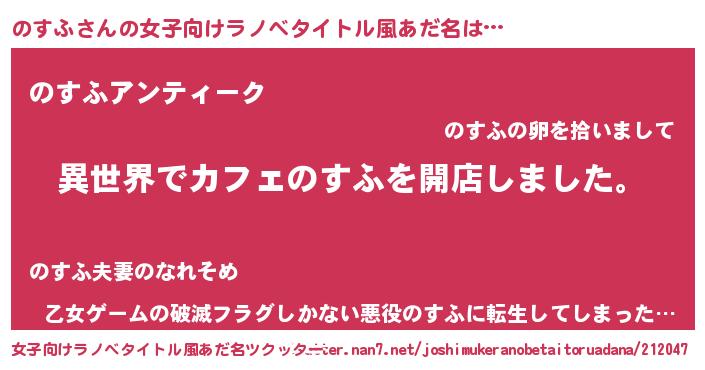 | 男性向けラノベタイトル風あだ名 | 『誰もが恐れるあののすふが、ぼくの専属メイドになるようです。』 |
