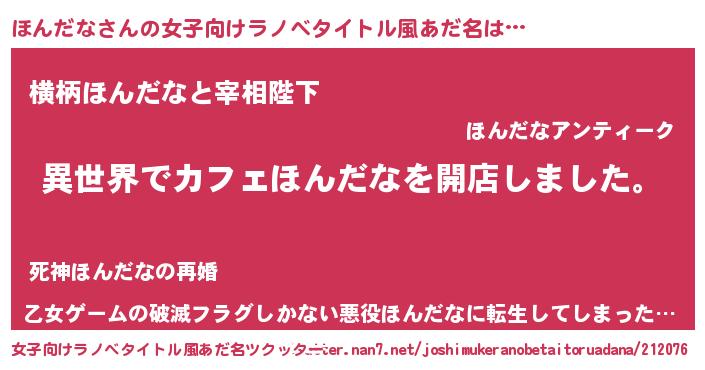 | 胡散臭い通販商品みたいなあだ名 | 『前代未聞の水素水…その名も「ほんだな」』 |