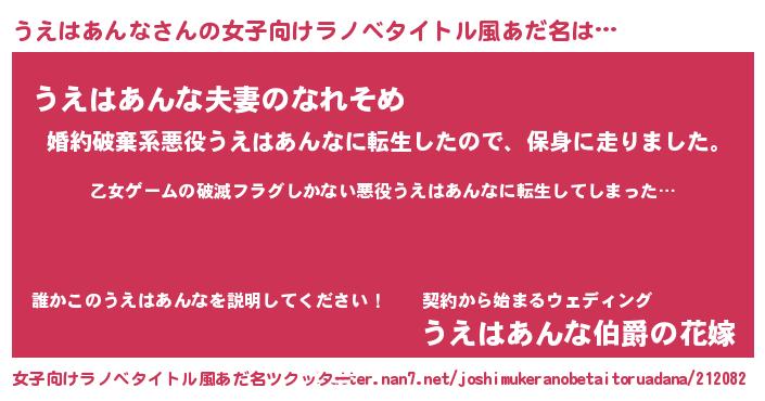 | 男性向けラノベタイトル風あだ名 | 『魔弾の王とうえはあんな』 |