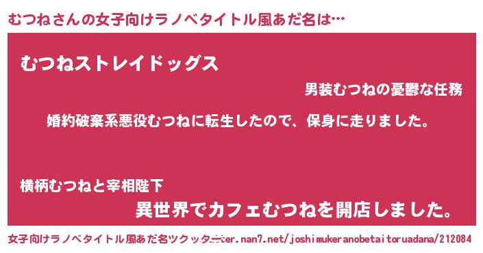 | 男性向けラノベタイトル風あだ名 | 『ムツネスレイヤー』 |
