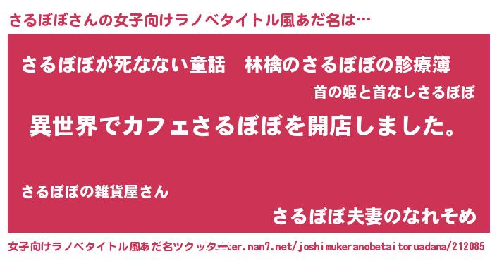 | 男性向けラノベタイトル風あだ名 | 『誰もが恐れるあのさるぼぼが、ぼくの専属メイドになるようです。』 |