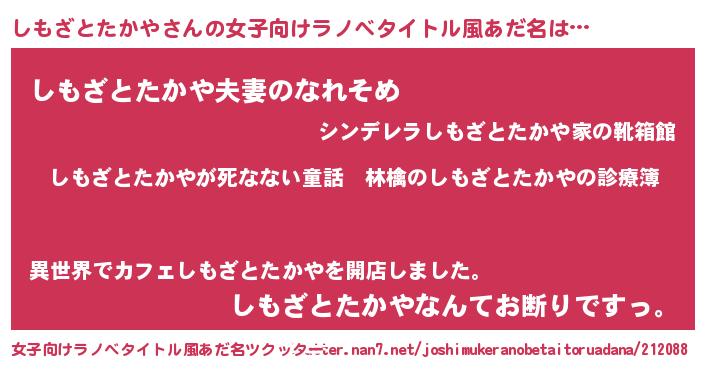 | 意味不明あだ名 | 『住所不定無職しもざとたかや(89歳)』 |
