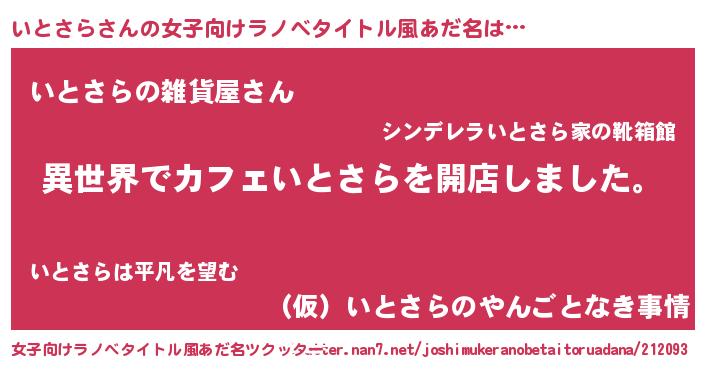 | ヘコむあだ名 | 『いとさら(笑)』『つくし』『いとを』 |