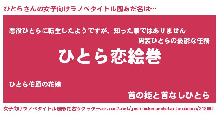 | 男性向けラノベタイトル風あだ名 | 『ノーゲーム・ノーヒトラ』 |