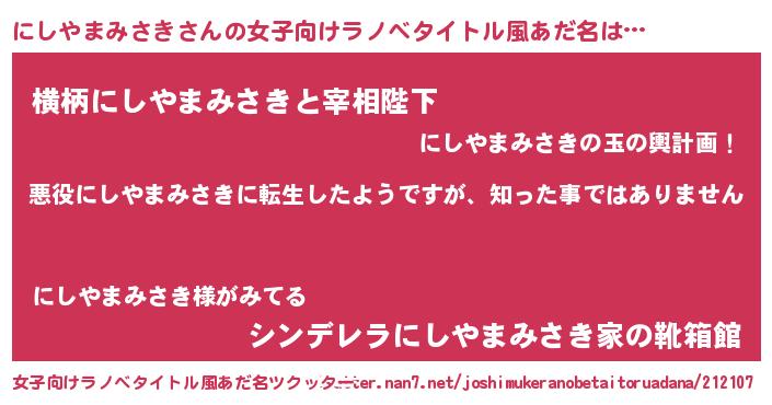 | 意味不明あだ名 | 『住所不定無職にしやまみさき(77歳)』 |