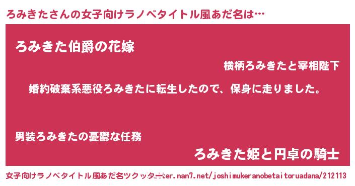 | 男性向けラノベタイトル風あだ名 | 『転生したらろみきただった件』 |