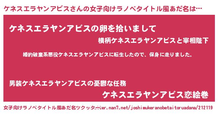 | 料理風あだ名 | 『ケネスエラヤンアビスごはん』 |