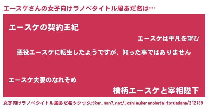 | 男性向けラノベタイトル風あだ名 | 『この素晴らしい世界にエースケを!』 |