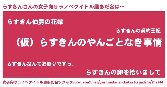 | 胡散臭い通販商品みたいなあだ名 | 『必ず成功するブレスレット…その名も「らすきん」』 |
