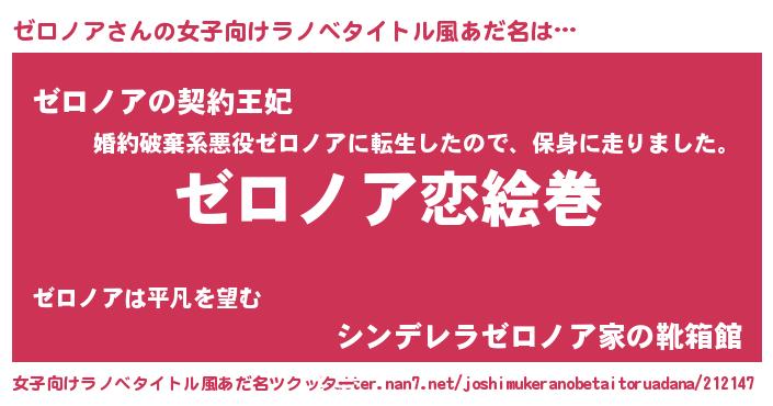 | 男性向けラノベタイトル風あだ名 | 『ノーゲーム・ノーゼロノア』 |
